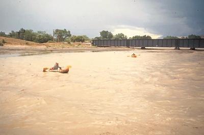 For the first few minutes the Puerco was flat and coppery in the noonday sun, and we drifted swiftly along savoring the feeling of doing something that few others had done. We were pioneers! But then, seemingly out of nowhere, a herd of four-foot waves reared up and nearly flipped us.